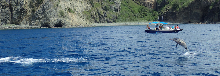 イルカやクジラ達に出会えればドルフィンウォッチングやドルフィンスイム、ホエールウォッチングが行われる他、天然記念物に指定されている南島(みなみじま)への上陸や海中公園でのシュノーケリングもお楽しみ頂けます。