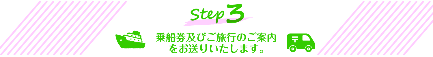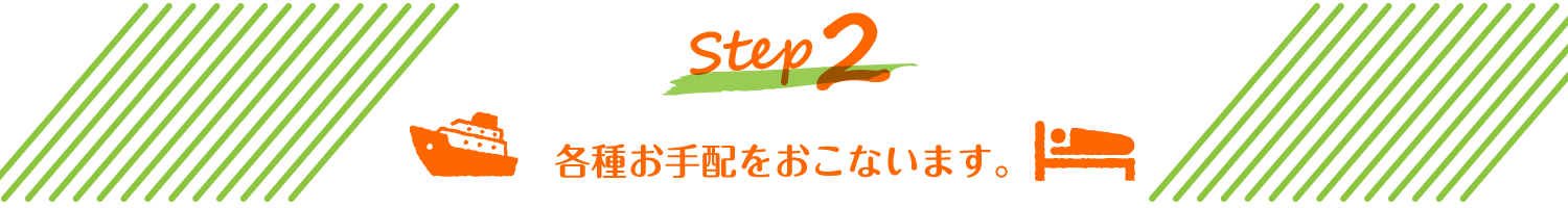 週1便の船便での郵送物発送などの都合により、ご旅行のお申込みはご出発の3週間前までにお願い致します。