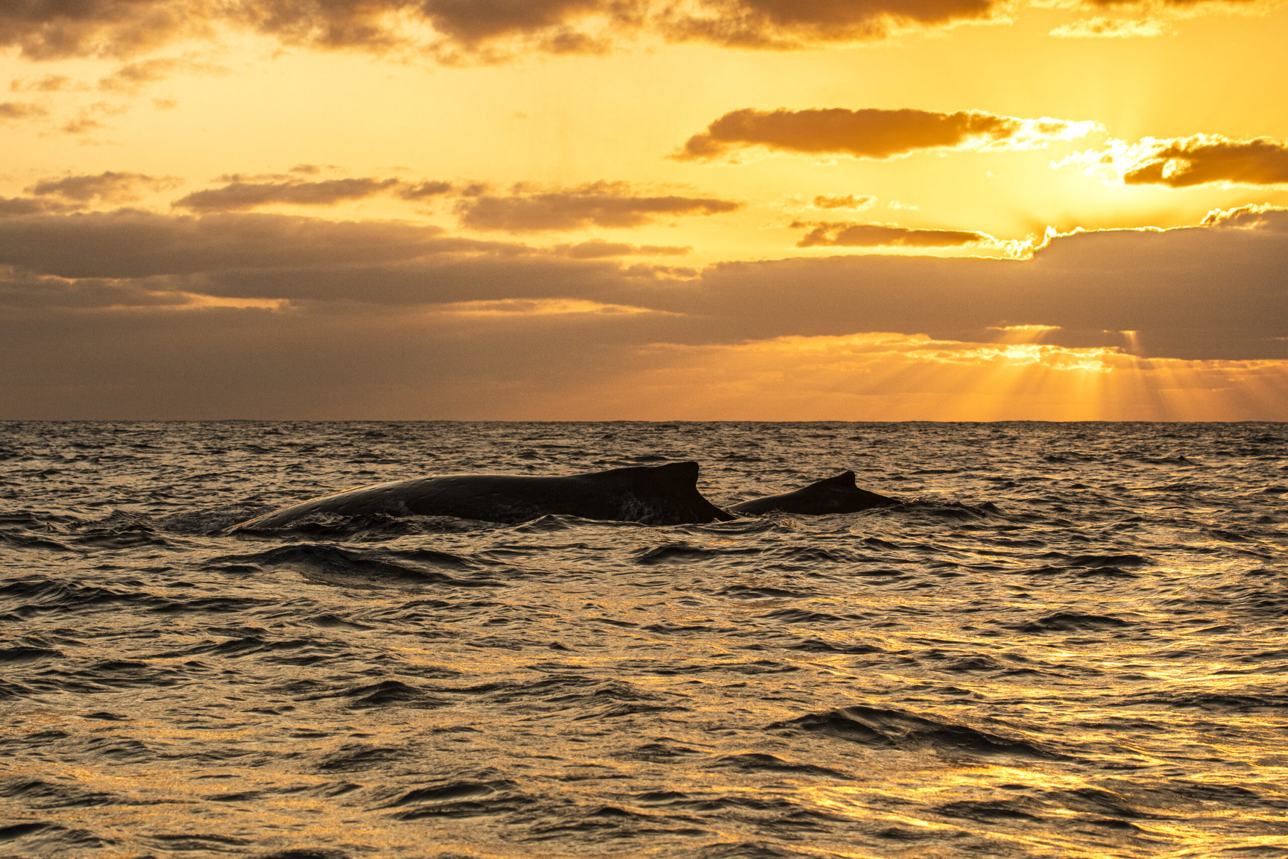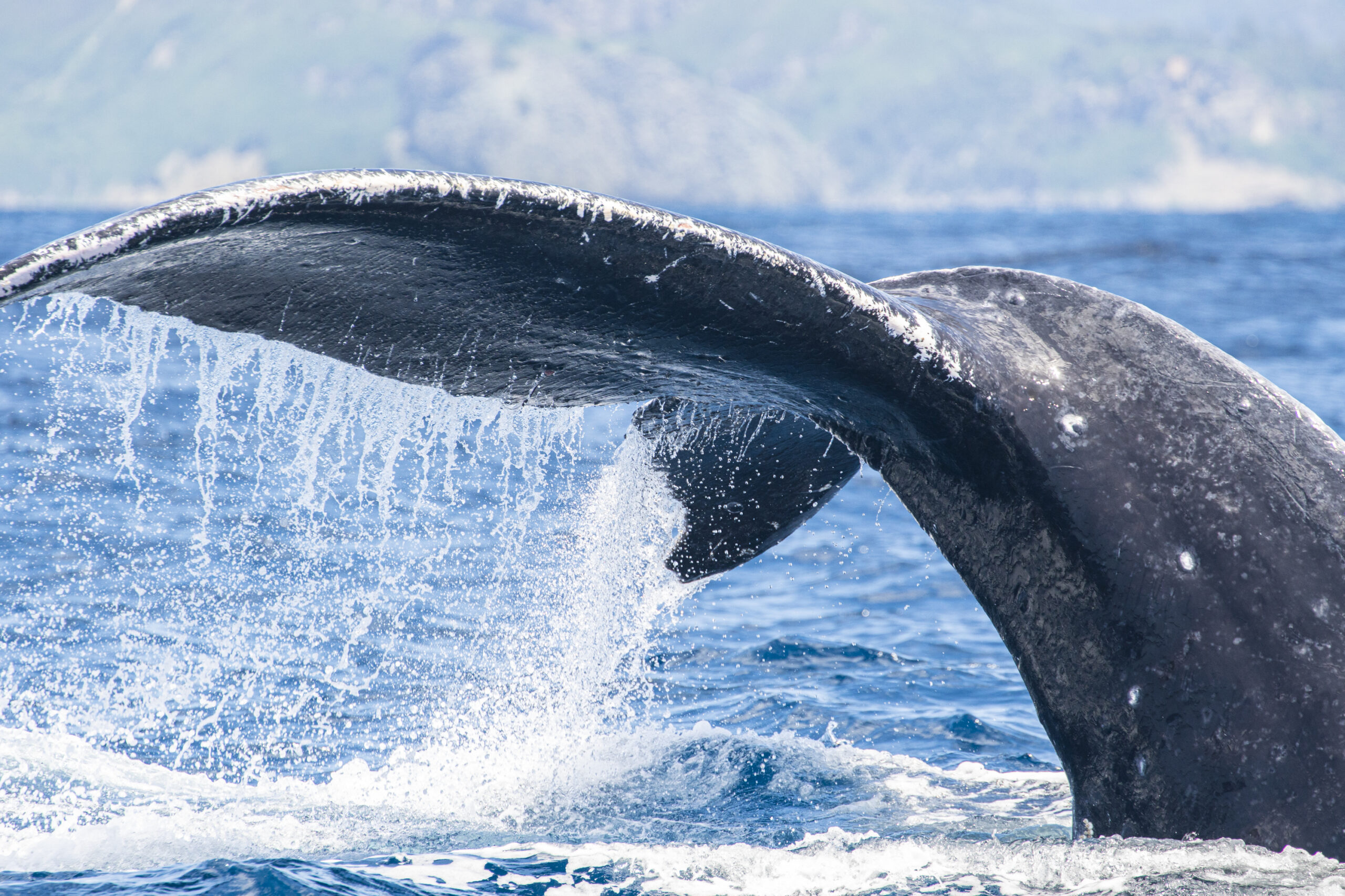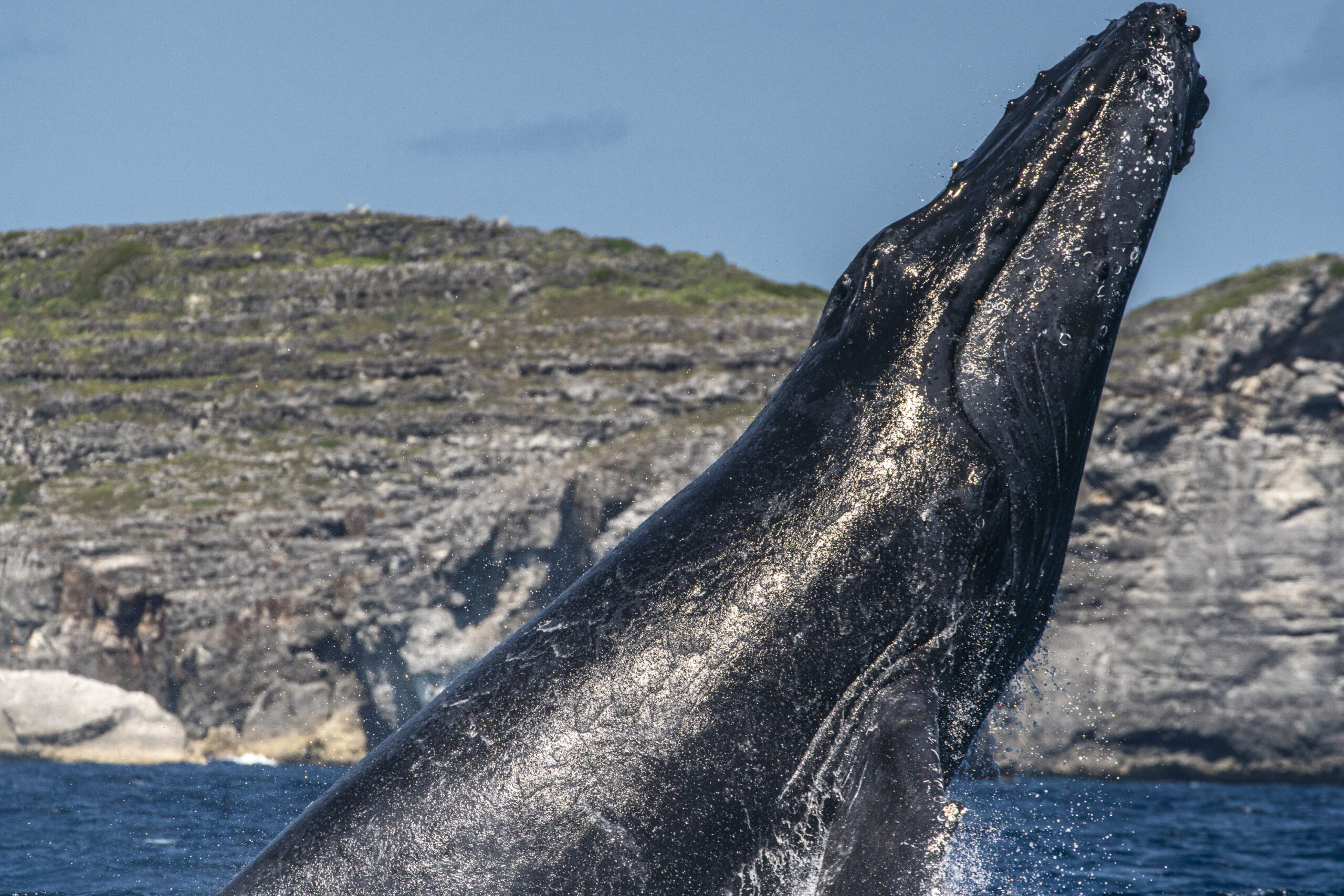 このザトウクジラを対象として、小笠原は1988年に日本で初めてのホエールウォッチングが行われた場所でもあります。1988年にホエールウォッチングが始まる前年まで小笠原では母島の東港を拠点とする基地式捕鯨が行われていましたが、1987年の国際的な商業捕鯨の禁止に伴いそれも終焉を迎え、翌1988年に日本で始めてのホエールウォッチングが実施されたのです。ただ、その時にはかなりザトウクジラの数も少なくなっていたのか(ザトウクジラは1966年に北太平洋での捕鯨が全面的に禁止)、ホエールウォッチングを始めたばかりの頃は、岸から遠く離れたところでしか、さらに数もあまり見られなかったというザトウクジラ。それでもホエールウォッチング開始から30年以上の時が経ち、ザトウクジラ達の数も回復傾向に転じ、ここ小笠原でも見られるクジラ達との距離感がだいぶ縮まって来ています。ホエールウォッチングのピークシーズンにはウェザーステーションなどの展望台やハイキング中の山道からもクジラ達の姿がたくさん見られますし、天候が悪く海に出られないという日を除けば、ホエールウォッチングのツアーでもかなりの高い確率で、時にはすぐ船のそばに寄ってくるクジラにも出会える様になりました。10mを超す大きなクジラが間近でブローを上げ、ブリーチングと呼ばれるジャンプや尾ビレや胸ビレを叩きつけるなど様々行動を見せてくれる。これは実際にご自身の目で見て感じていただかないとその感動を伝えるのは難しいですが、ご覧頂ければ忘れられない風景として心に刻まれるでしょう。